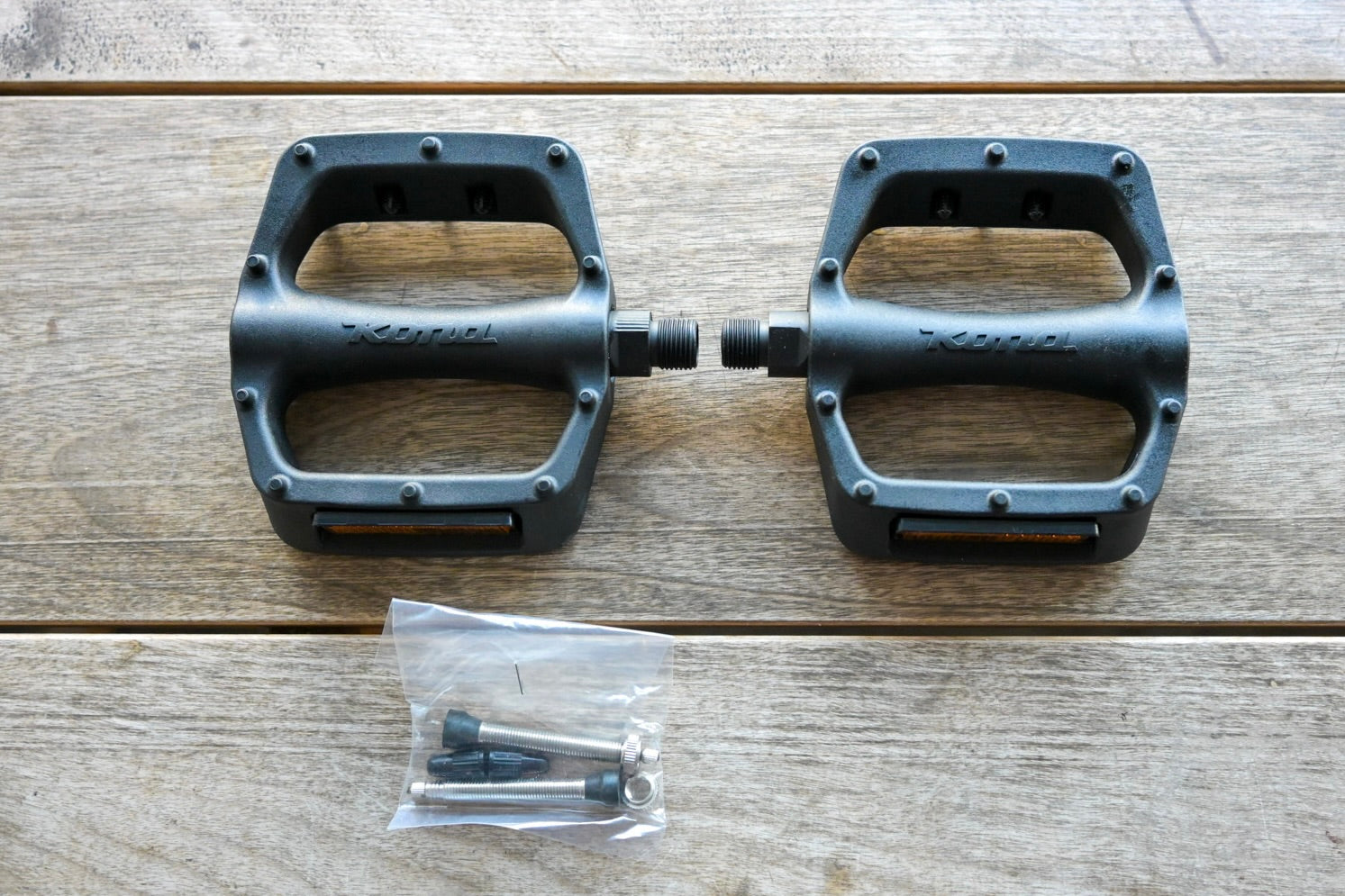 完成車にはペダルとチューブレスバルブが付属します。
